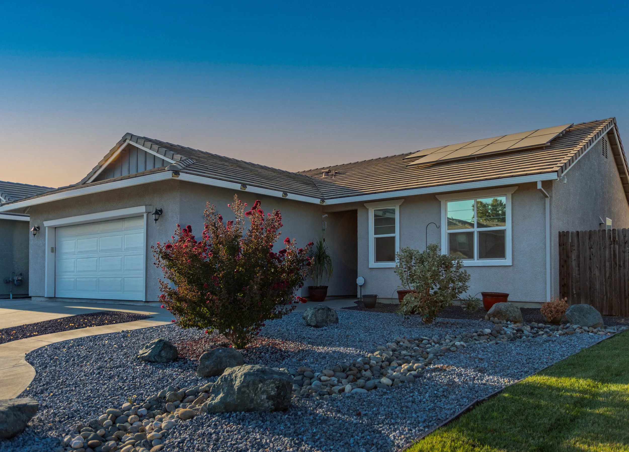 Twilight exterior photography is captured on location at dusk, shortly before and after sunset, to highlight the home with balanced natural light and a warm evening sky. This service creates a polished, high-impact exterior image that helps listings stand out online and is ideal for properties with strong curb appeal or architectural lighting.